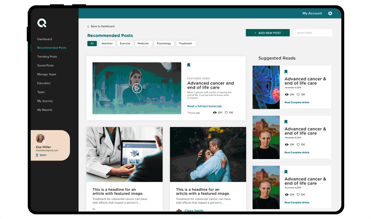 We created the platform with the one goal in mind: User Empathy. At the core of the platform is the education but the fact that these resources are being shared by a trusted community of caregivers, friends, family.
