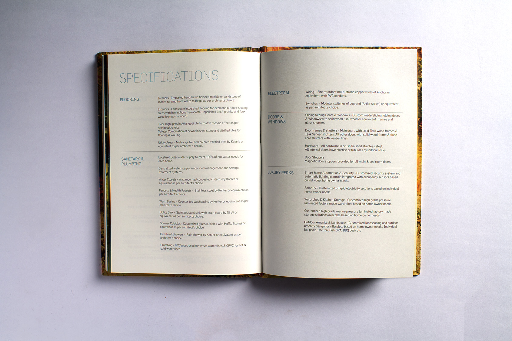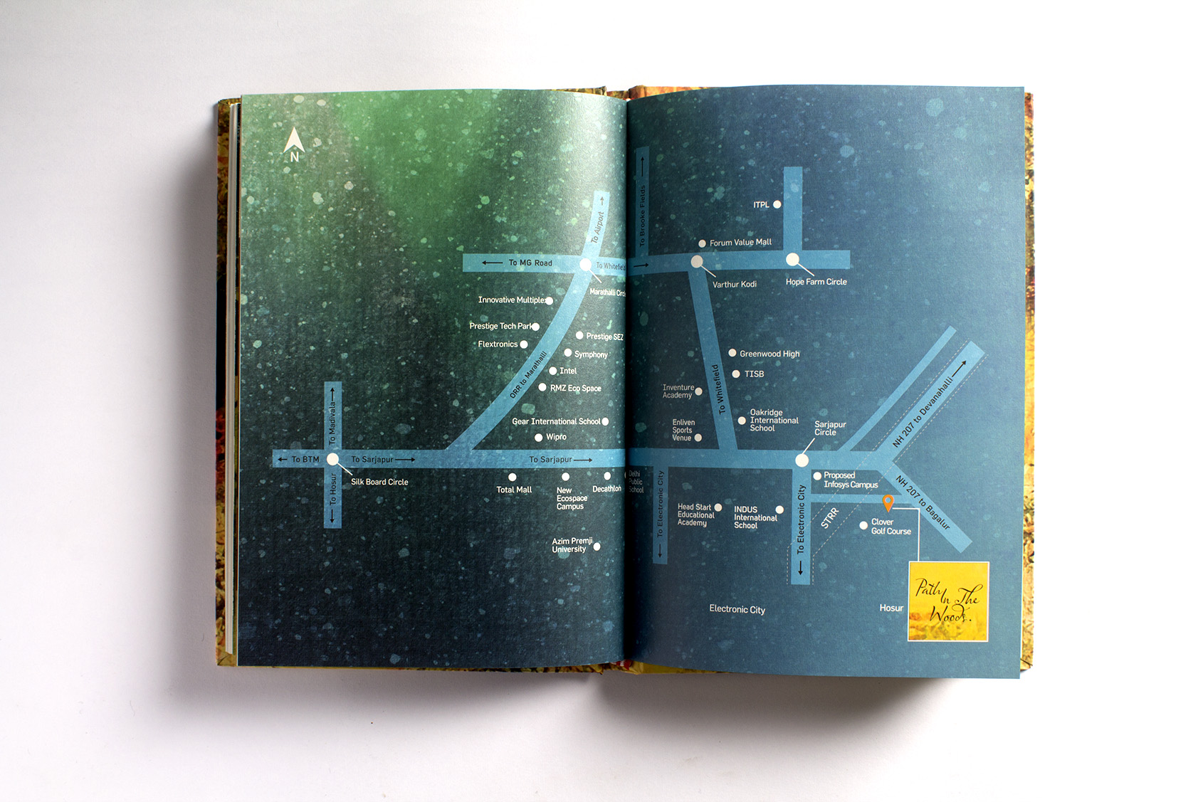 Since the project was being launched in the outskirts, we decided to call it Path in The Woods. Inspired by master artist Van Gogh’s painting, the naming did justice to the project as it went well with the lush greenery and subtle wilderness of the locale. We positioned the project as HIDEAWAY RESIDENCES in Bangalore and designed the brochure with the theme of the discoveries of a wanderer where the size of the book and the content was curated to look like a personal diary, which contained stories from a weekend spent by a family at Path in the Woods. This not only gave the reader a sense of freedom and escape from the mundane, but also brought out the architecture, design, landscape and technical floor plans in an engaging manner.