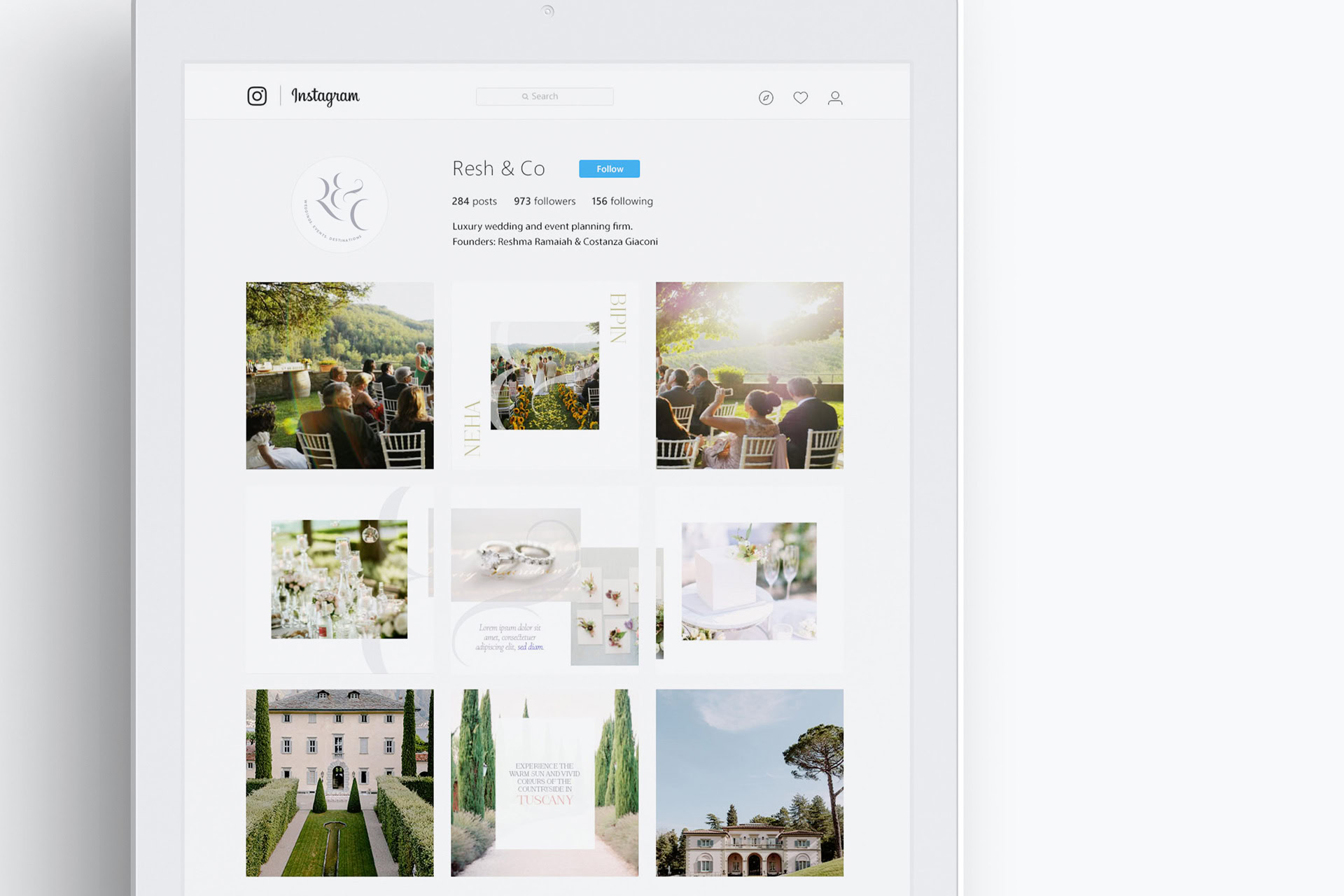 One Indian, one Italian, altogether, a fusion of two cultures and identities. With such prowess behind the company, the name needed to reach out and help accredit the brand as a dependable one. This fusion of identities led to the name, Resh & Co, the names of the two founders. It’s clean, feels homespun and is not an obscure wedding term. With the name in place, we arrived at the final logo after several rounds of exploratory work.