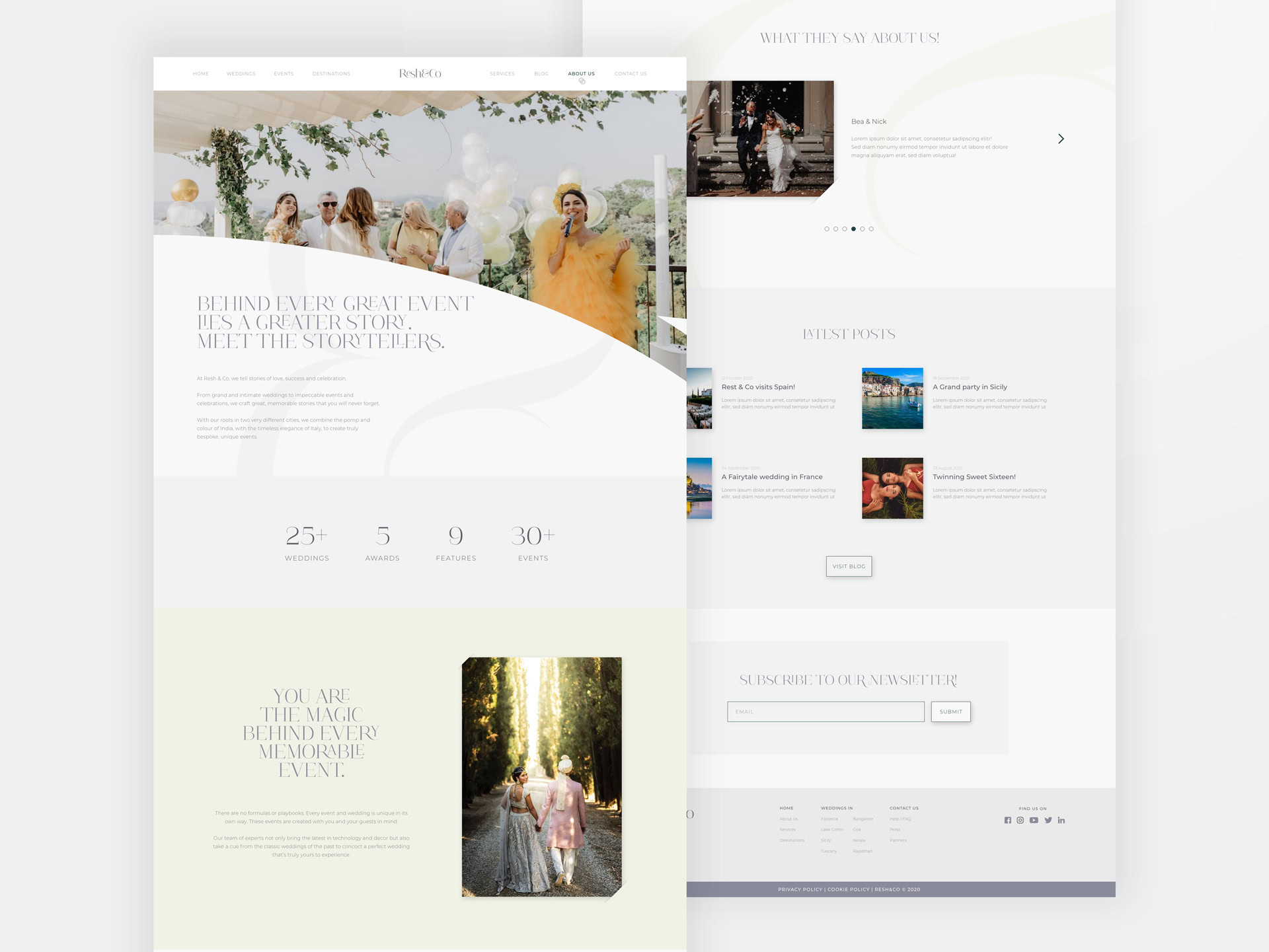With a tagline like “Every little detail counts", we positioned Resh & Co as a brand that’s granular and in-depth when it comes to throwing events. Our communication strategy was modern, restrained and at times, witty with alliteration and literary devices. The communication strategy we put in place was all about subtlety, grace and allegorical elegance. This is especially omnipresent on their official website where a stunning and refined user interface presents the brand in a dignified manner.